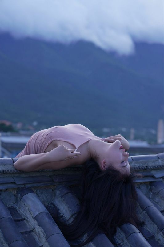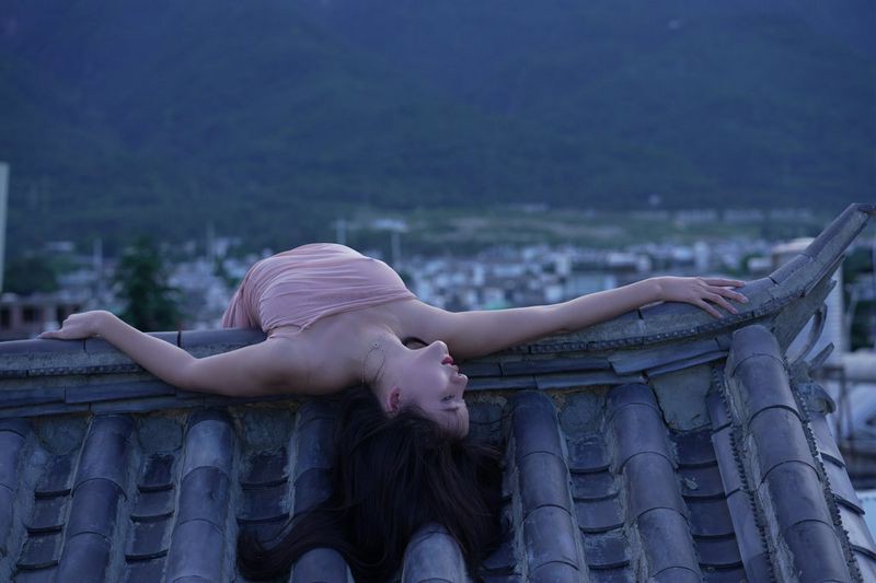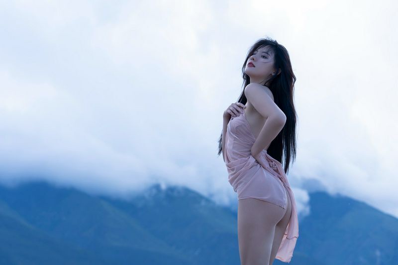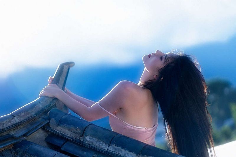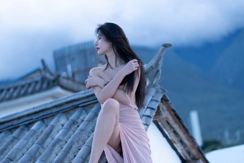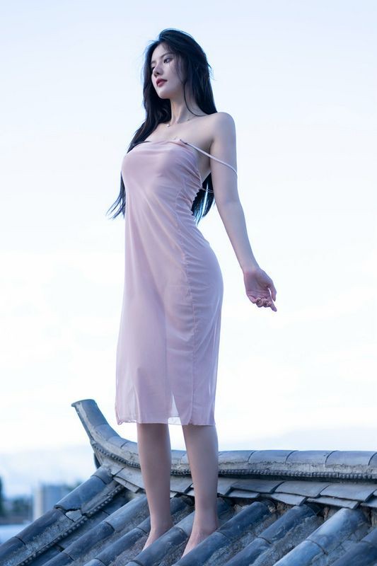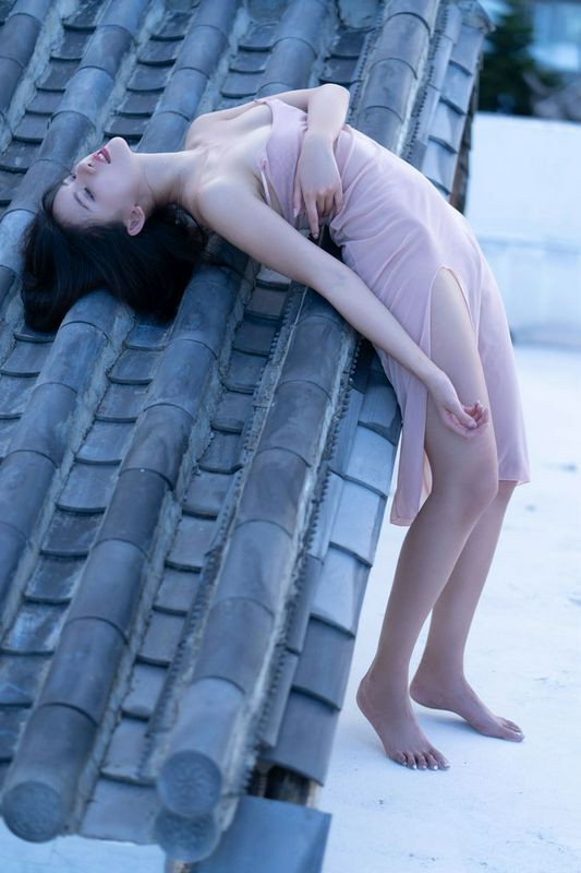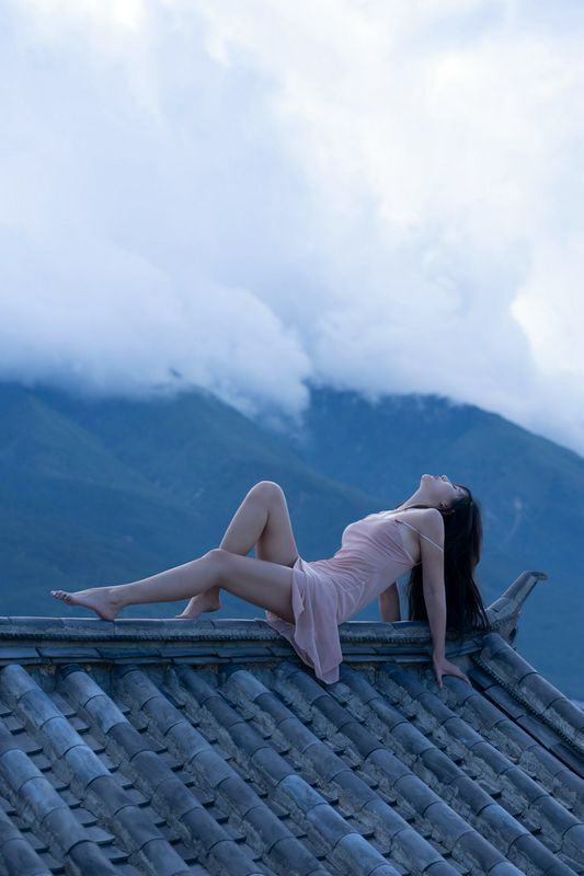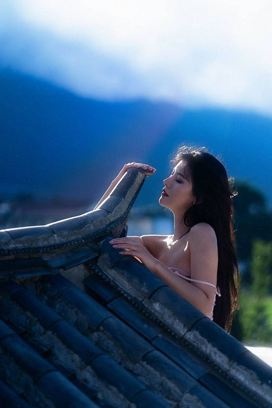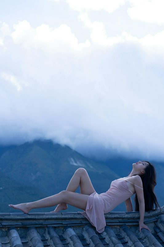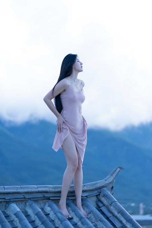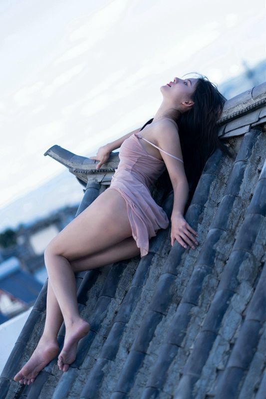 阿朱天台屋顶露出性感酥乳窈窕身材